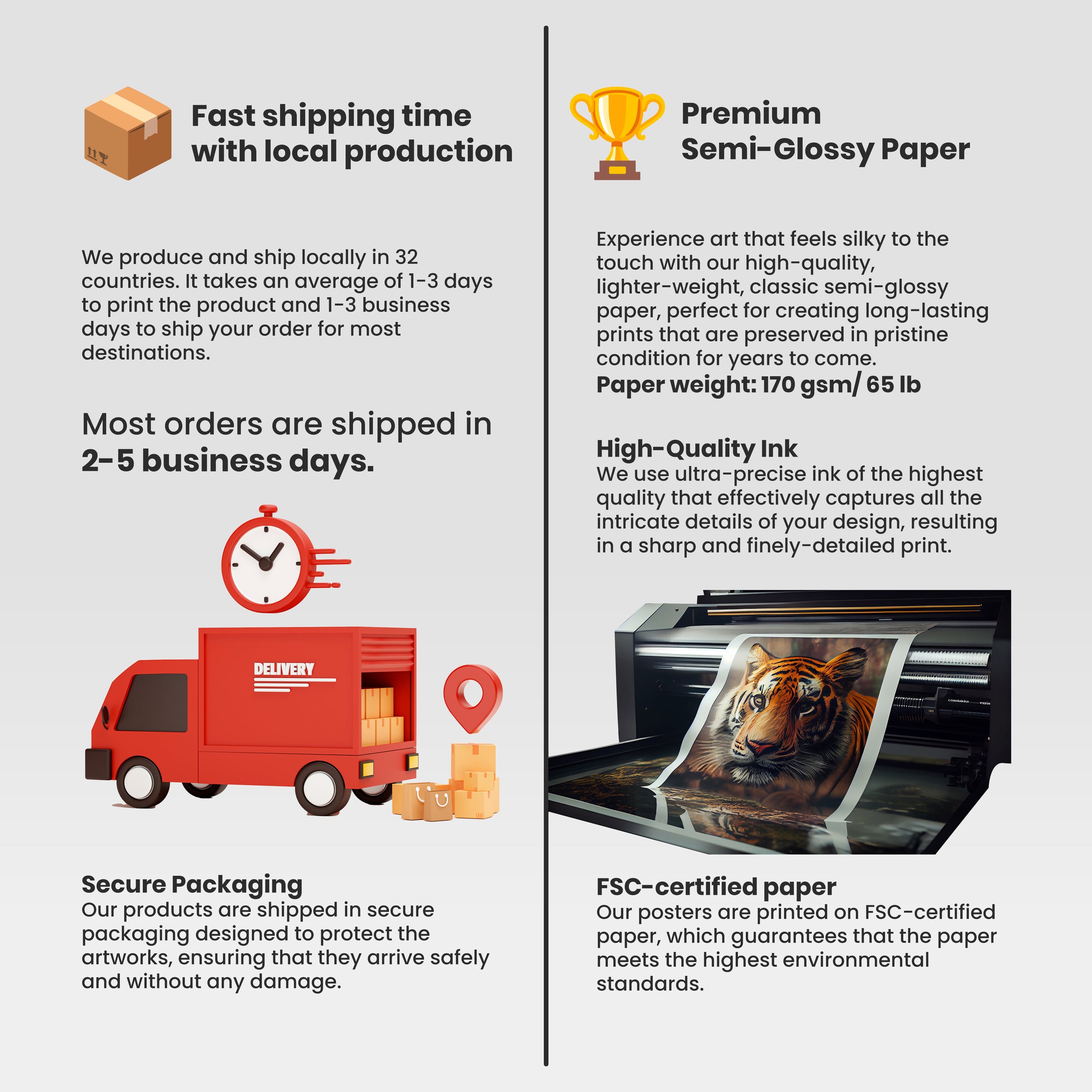 Our posters are printed on FSC-certified paper. This guarantees that each print is sustainably sourced, and meets the highest environmental standards.